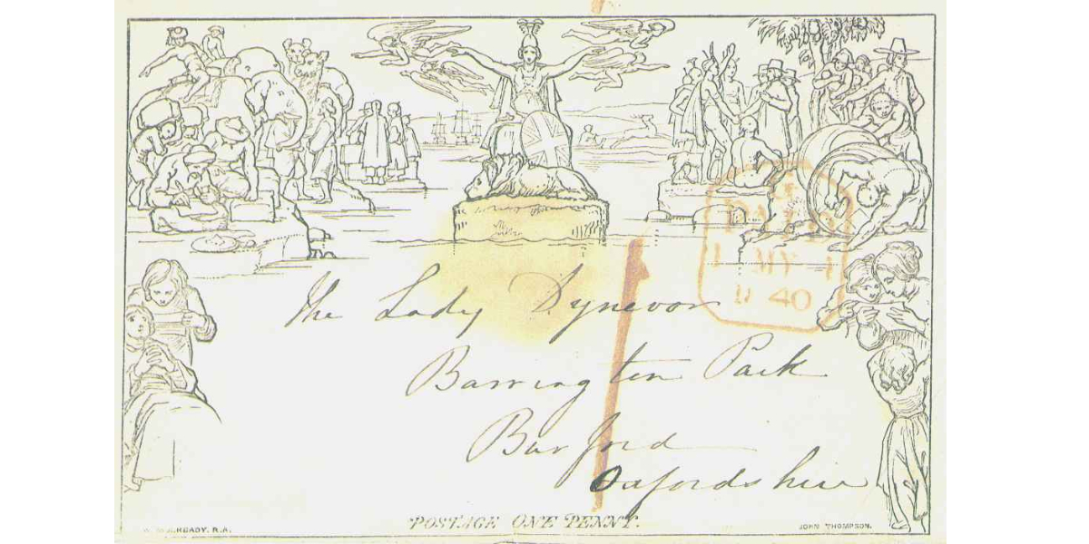 Enveloppe Mulready avec marque postale du 1er Mai 1840
